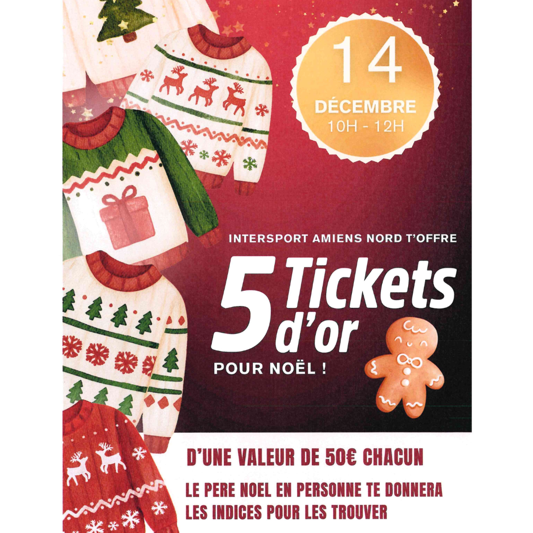 Intersport vous fait gagner 5 tickets d’or (50€ chacun) pour Noël le 14 décembre en magasin !